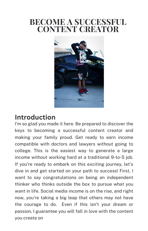 Discover the keys to becoming a successful content creator and making your family proud. Get ready to earn income compatible with doctors and lawyers without going to college. This is the easiest way to generate a large income without working hard at a traditional 9-to-5 job. Social media income is on the rise, and right now, you're taking a big leap that others may not have the courage to do. LETS GET IT!!